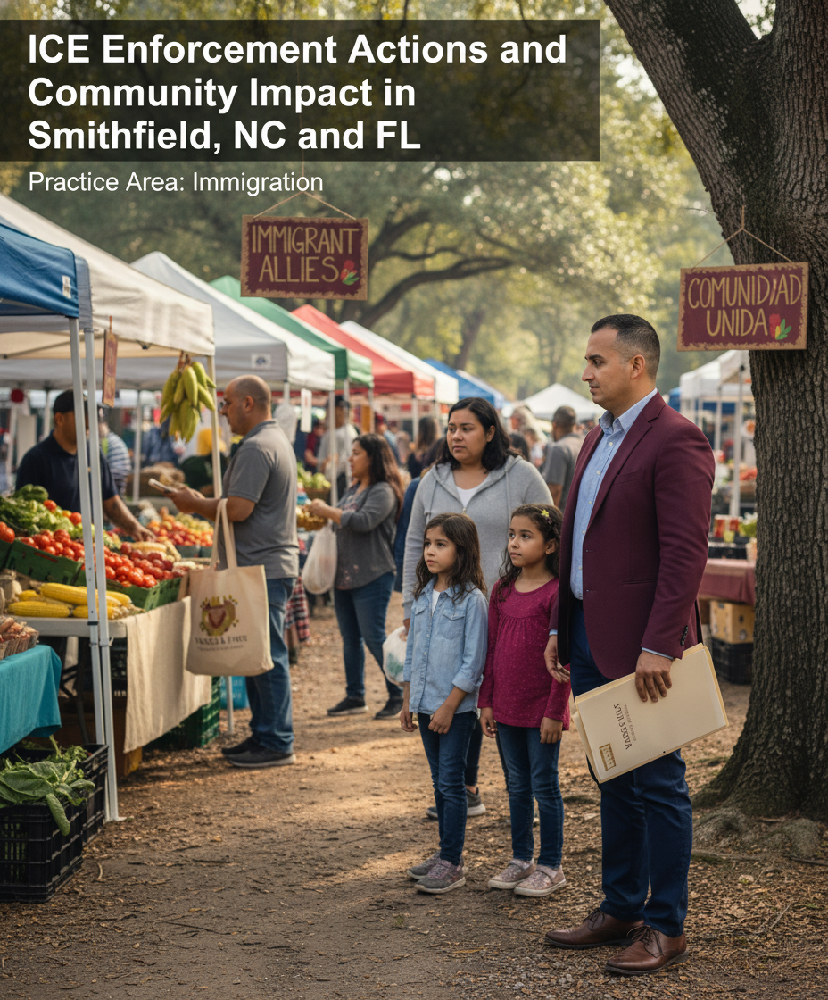 Learn about ICE Enforcement Actions and Community Impact in Smithfield, NC and FL. Call Vasquez Law Firm for a free consultation and expert immigration help.