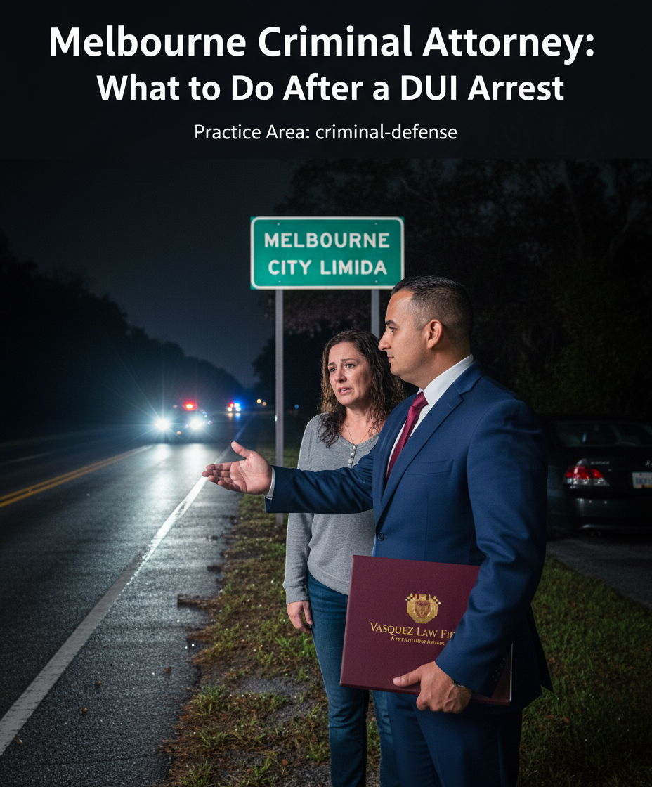 Need a melbourne criminal attorney after a DUI arrest? Learn the steps, penalties, and defenses—call Vasquez Law Firm, PLLC at 1-844-967-3536.