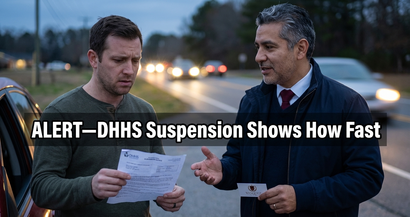 Need a traffic ticket lawyer NC? A license can be suspended fast—like DHHS did. Protect your record. Free consult: 1-844-967-3536.
