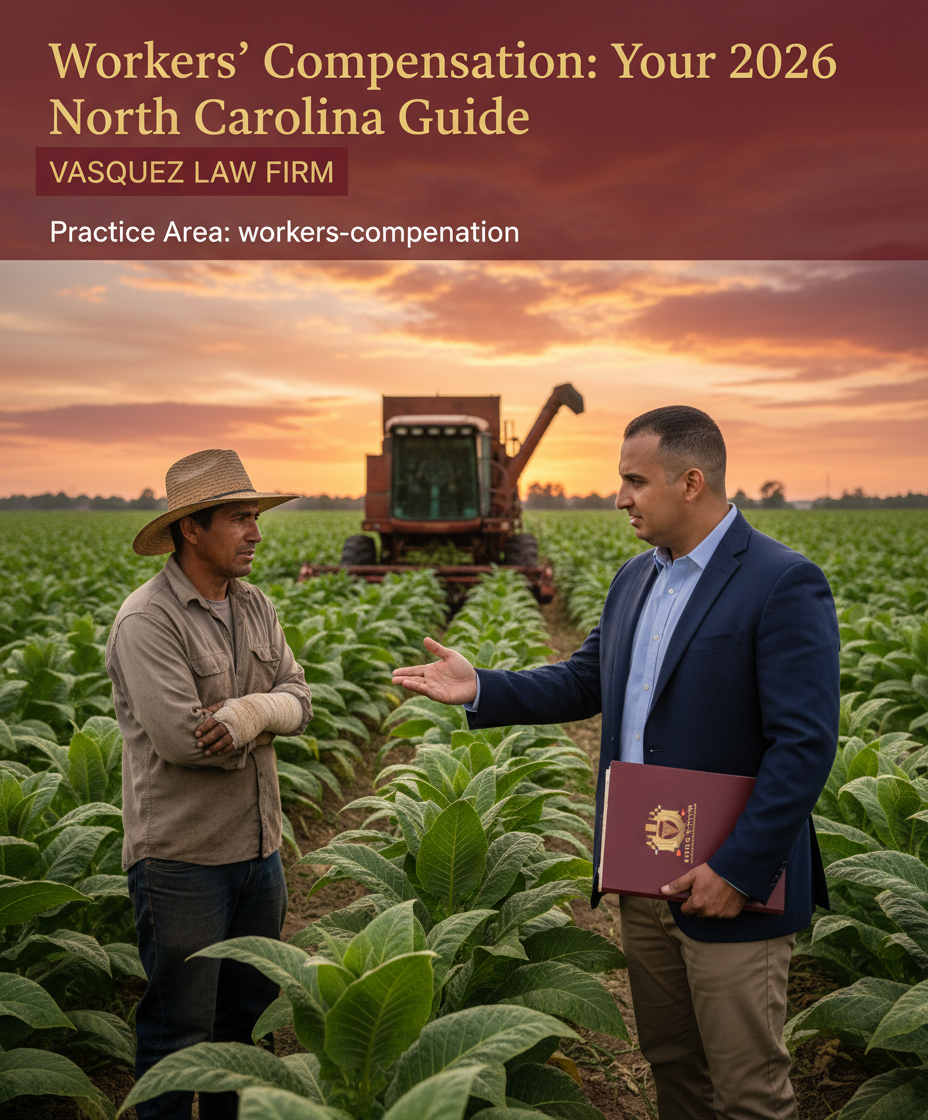 Workers' compensation is essential for protecting employees injured on the job in North Carolina. This 2026 guide explains your rights, steps to file claims, common mistakes, and what to expect. If you've been hurt while working in Smithfield or elsewhere in North Carolina, Vasquez Law Firm can provide bilingual, compassionate support to help you navigate these complex legal processes. Learn the timelines, costs, and when to call a lawyer to secure your rightful benefits.